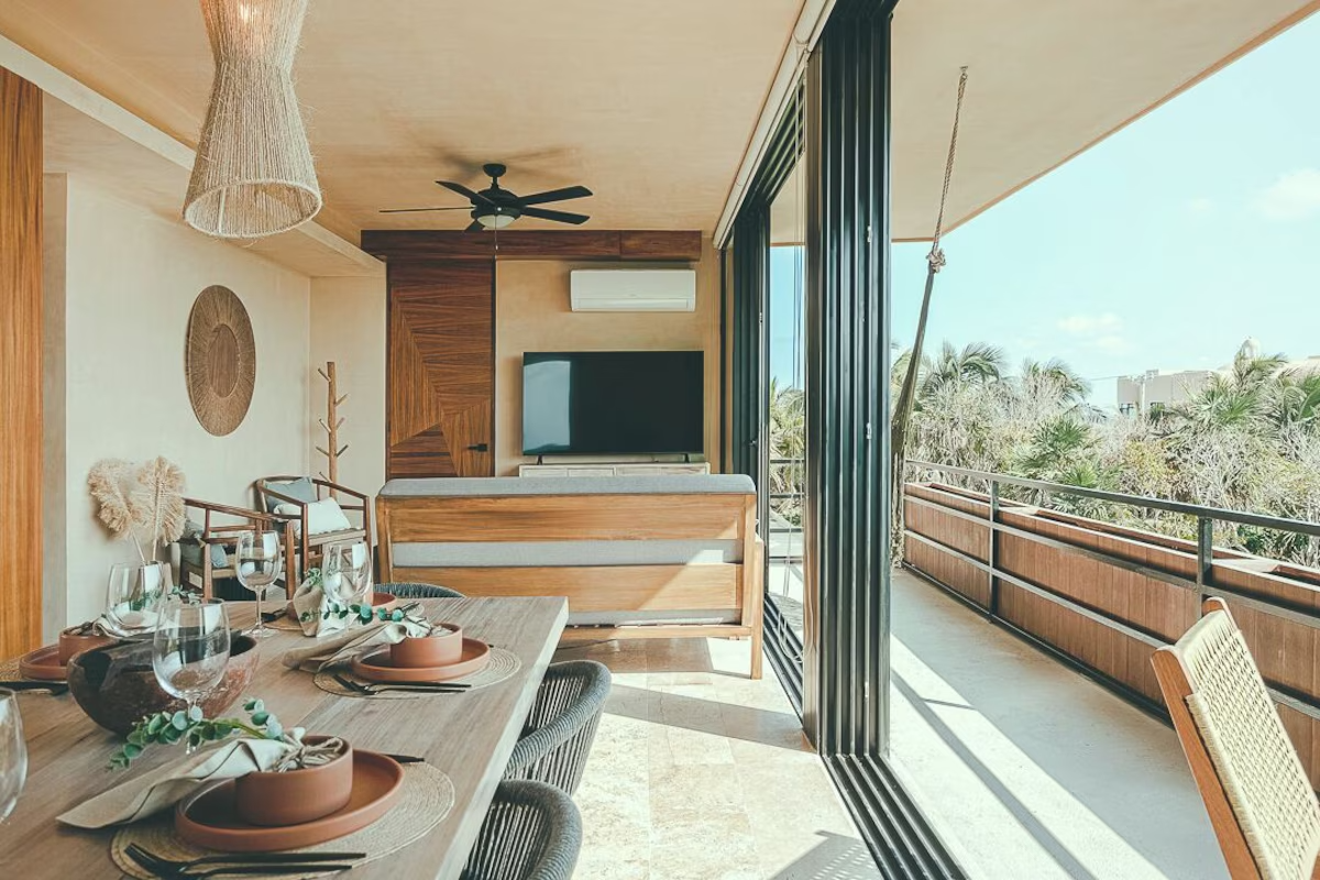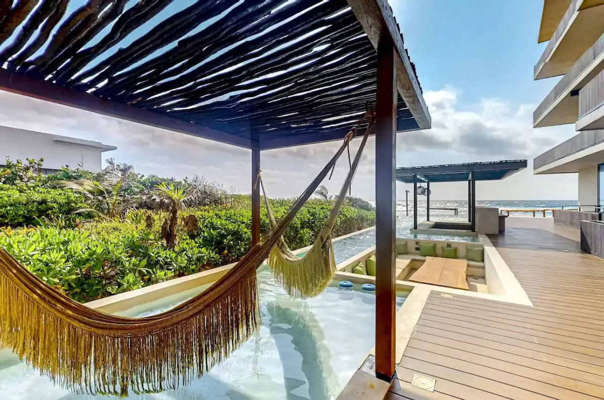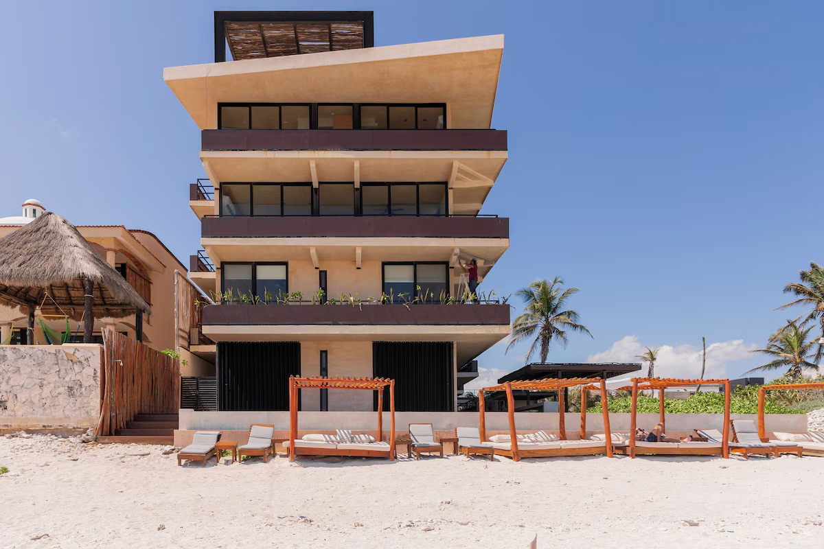 In Tankah, we would rent a two bedroom apartment in an oceanfront boutique building. Each of us would have our own room and bathroom, and would share a living area, kitchen, dining, and terrace. Apartments are equipped with Wifi and AC, and parking is included. There are 3 shared pools and terraces, and only 5 units in the building.