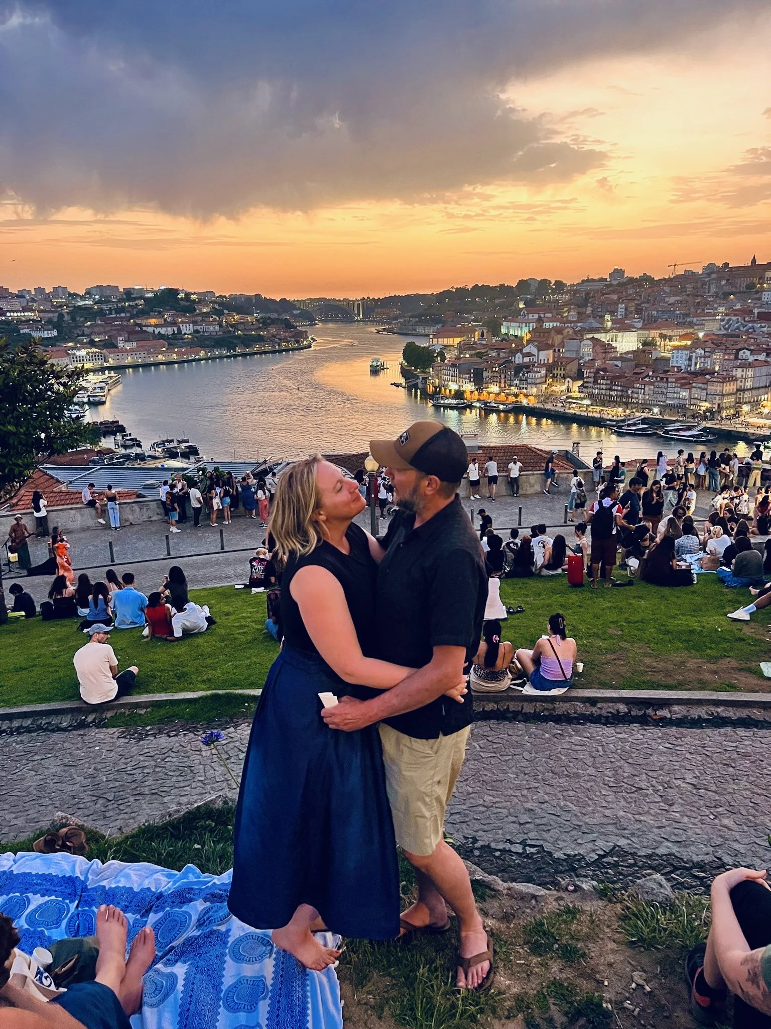 From Sao Bento, head to Taberna Dos Mercadores for an early dinner, around 5:30pm. Then make your way into the heart of the ribiera - the bustling waterfront. Take your time, meander around, and soak up the energy that is Ribiera. Eventually, make your way to the Luís I Bridge by way of the flea market along the water. Cross the bridge to Jardim do Morro and pick a spot on the grass and take in the views. Enjoy your picnic, some wine if you brought some, or buy beer off someone with a cooler. Sing along to Red Hot Chili Pepper covers with the band and crowd as the sun sets. Take your timing walking home and reflect on your time in Porto!